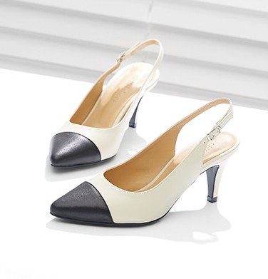 한손에 들어올 듯한 작은 발을 연출해주는 착시 슬링백 힐이에요