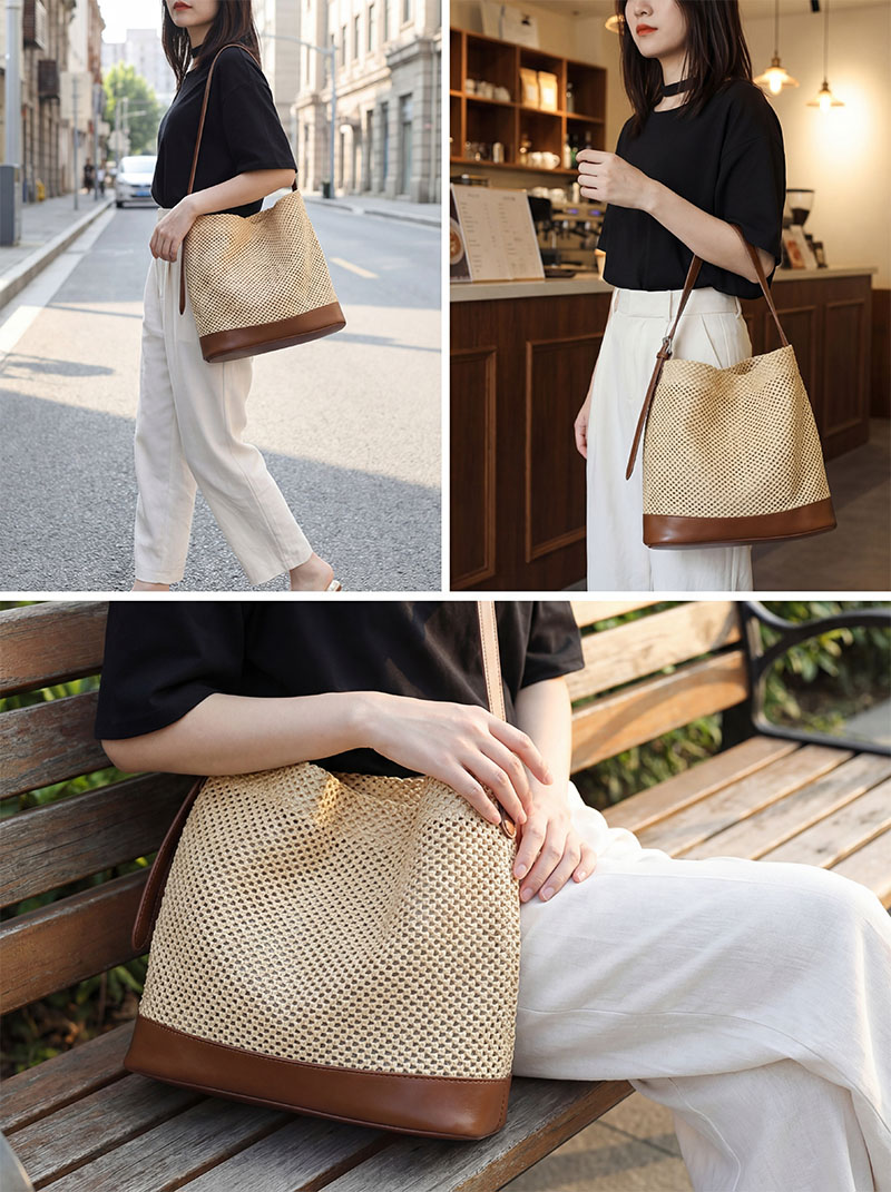 배색컬러로 무심하게 포인트 준 라탄 숄더백이에요^^