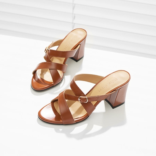 사선 스트랩 내추럴 슬리퍼힐