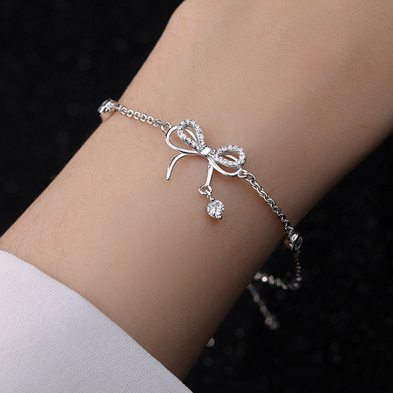 플로럴 큐빅 포인트 리본 팔찌