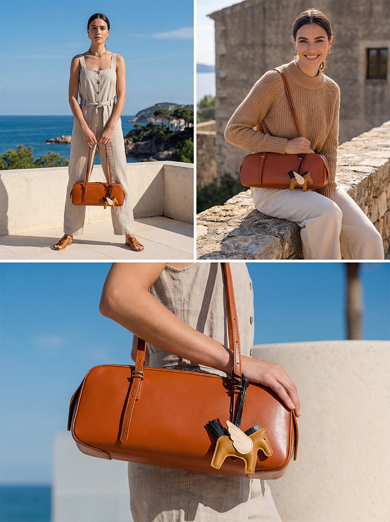 카든 숄더백 (인형 고리 SET)견고하면서도 부드러운 소재와 세련된 실루엣이 만나시크하면서도 모던한 분위기를 연출해 주고 있는 숄더백.여유 있는 내부와 안정적인 쉐입 덕분에 필수 소지품수납에 용이하며, 귀여운 페가수스 참 장식이유니크하면서도 사랑스러운 포인트를 더해주었답니다.데일리룩에 감각적이고 특별한 매력을 더해줄 수 있는활용도 만점의 아이템이라 할 수 있어요.