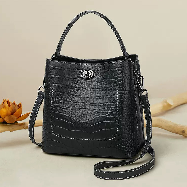멋스러운 무늬피 패턴이 돋보이고 있는 버킷 핸들 크로스백!