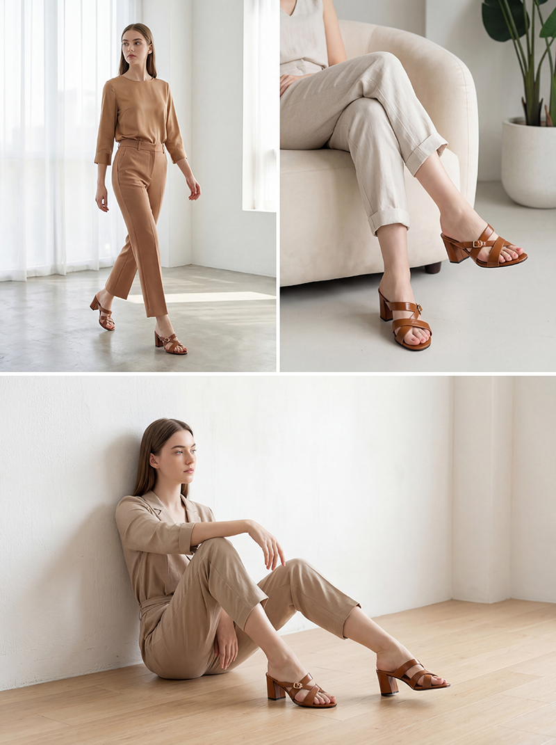사선 스트랩 내추럴 슬리퍼힐